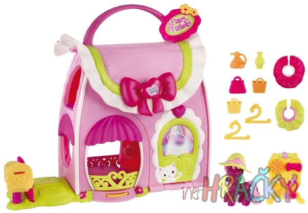 MÓDNÍ BUTIK je oblíbeným místem parádivých poníků, kteří si tam zkoušejí a kupují nejkrásnější modely v městečku PONYVILLE. Pomozte poníkům vybrat oblečení na zábavné dobrodružství! Oblečte TŘEŠINKU do různých modelů a pokaždé bude vypadat jinak! Když budete otáčet kolečkem, ve výloze bude kolovat poník s módními kreacemi! V butiku je dokonce otevírací poštovní schránka, kam mohou chodit zvláštní zásilky.