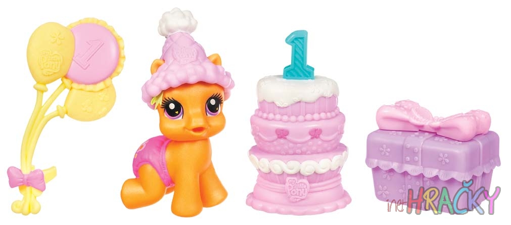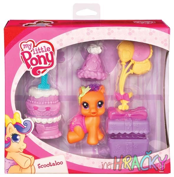 SCOOTALOO slaví první narozeniny a potřebuje pomoc s oslavou! Nasaďte jí rozkošnou oslaveneckou čepičku, aby vypadala dokonale, a pak ji překvapte spoustou balónků a narozeninovým dortem. Počkejte, oslava ještě nekončí – malý poník dostane také jedinečný narozeninový dárek. Assort obsahuje také sadu poníka s kočárkem, dále pak poníka STAR SONG s klíči a slonem. Pro děti od 3 let.