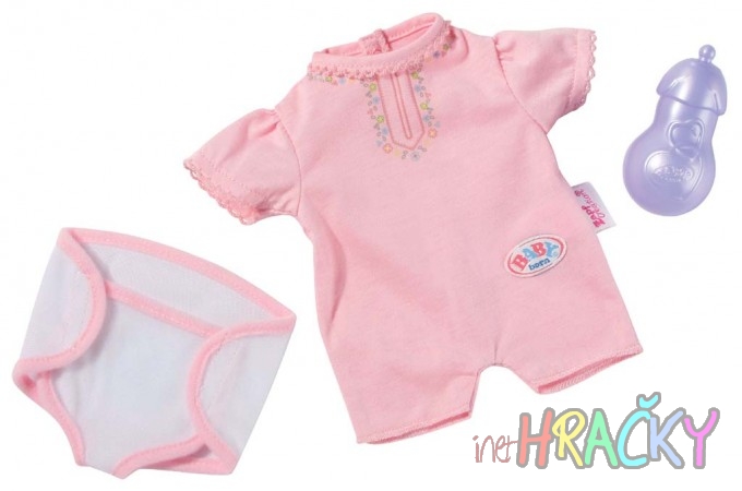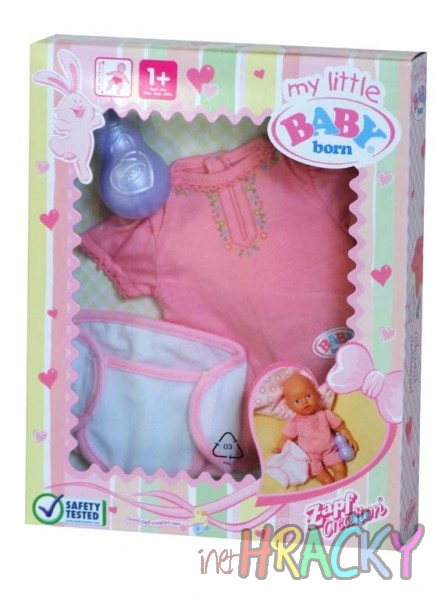 My little BABY born Sada pro péči obsahuje obleček, lahvičku a plenkové kalhotky.