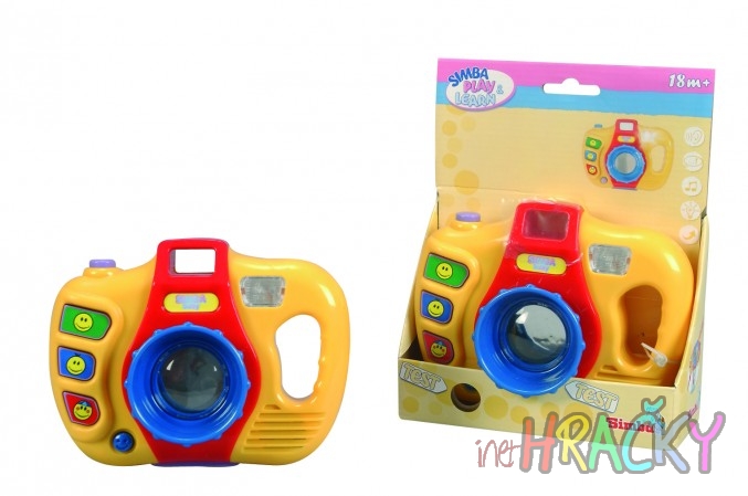 Simba fotokamera je krásně barevná. Stiskem tří zvukových kláves lze spusit mluvení, hudbu nebo zvuky a další funkce,...