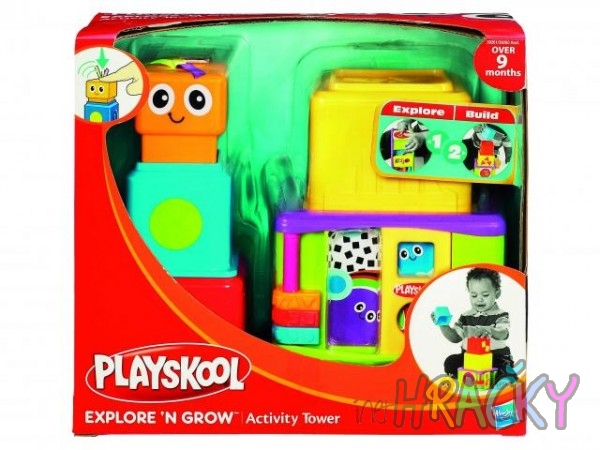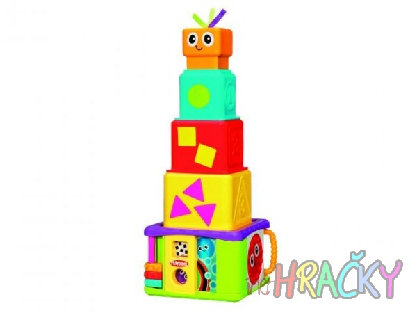 Sada kostek se zrcátkem,cvakátkem,točítkem,skluzavkou, cvakajícími kroužky a pískátkem. Sada obsahuje hrací desku,velkou kostku, střední kostku, malou kostku a pískátko. Věk 9 měsíců +.