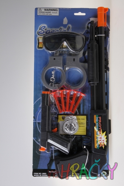 Kompletní policejní sada pro malého policistu. Žádný zločinec nemá šanci. Sada obsahuje pistoli, šipky s přísavkou, pouta, brýle, pušku, pouta a odznak. Tak se do toho dej.