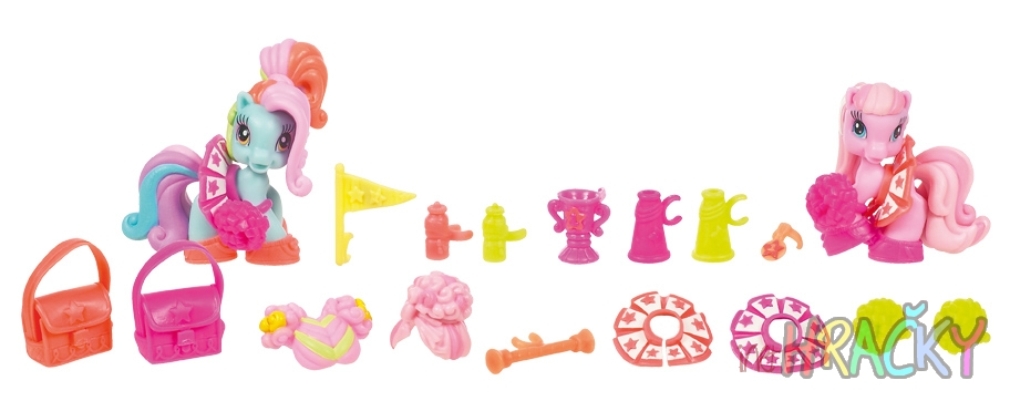 Pomozte PINKIE PIE a RAINBOW DASH ukázat, co v nich je, tím nejzábavnějším a nejmódnějším způsobem! V úžasné sadě oblečků najdete všechno, co poníci potřebují, aby se z nich staly roztleskávačky podle nejmodernějších trendů. Jsou tu sukně, boty, hůlky a další doplňky. Dokonce jim můžete sladit účes s oblečením, aby mohly jako roztleskávačky povzbuzovat své oblíbené týmy! Obsahuje dvě figurky poníků a více než 20 dílů příslušenství, včetně 4 paruk. Pro děti od 4 let.