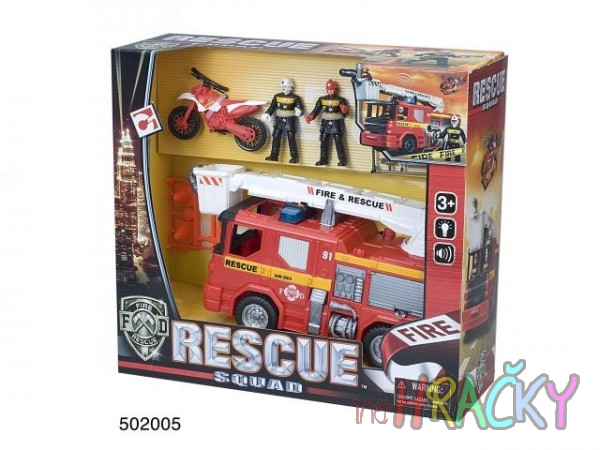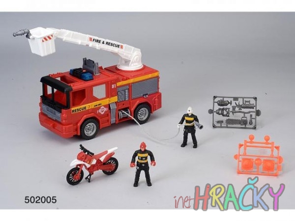 Požární set se světlem a zvukem pro děti od 3 let na baterie 3x AG13 (součástí balení). Hrací set obsahuje požární auto, figurky a příslušenství.