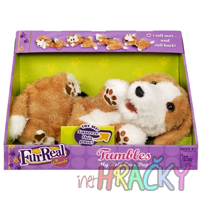 Převalující se pejsek furReal friends. Krásný plyšový pejsek, který se vesele převaluje a poštěkává, když mu zmáčknete levou přední pacičku. Pejsek je velký 35 x 20 x 20 cm a je na 4 baterie 1,5V. Pejsek je krásným dárkem pro holčičky i kluky. FurReal friends - plyšoví kamarádi, které si děti mohou nosit všude sebou.