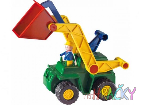 Plastový nakladač s aktivní figurkou z masivního, vysoce odolného materiálu o velikosti 18x9x15 cm. Všechny součásti plně mechanicky funkční. Vhodný pro děti do 3 let.