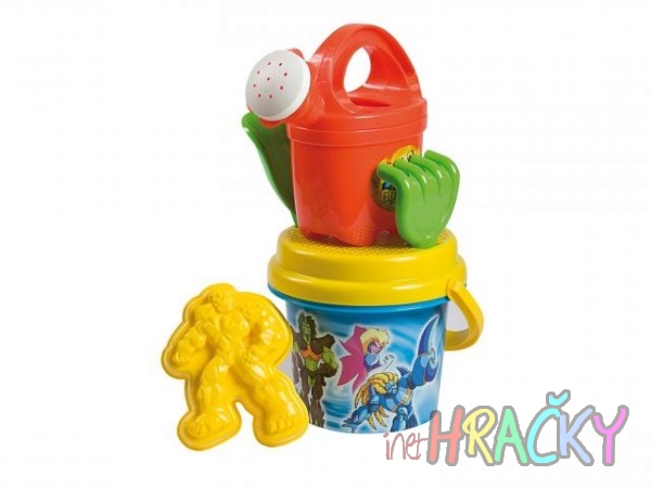 Sada na písek s tématikou Gormiti. Sada obsahuje kyblík, sítko, konvičku, hrabítka, lopatičku.