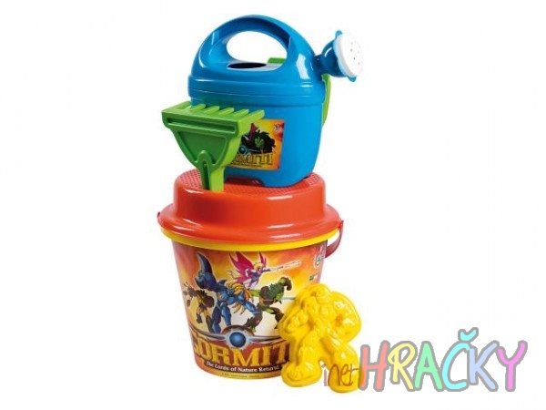 Sada na písek s tématikou Gormiti. Sada obsahuje kyblík, sítko, konvičku, hrabítka, lopatičku.