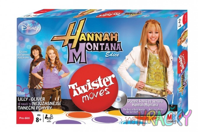 Twister moves Hannah Montana. Je tady hitparáda a vy se díky TWISTER MOVES dostanete do světla reflektorů! Popadněte podložku, pusťte si CD TWISTER MOVES a postavte se na stopy. Pak dělejte pohyby dle pokynů Lily a Olivera. Naučíte se kroky k 12 tanečním písničkám a 4 písničkám od Hannah Montana: The Best of Both Worlds, Nobody’s Perfect, We Got the Party a I Got Nerve. Tato edice TWISTER MOVES obsahuje hlasy Lily a Olivera z populárního TV seriálu. Obsahuje 2 podložky, 2 CD TWISTER MOVES, 1 CD Hannah Montana a instrukce. Potřebujete jen CD přehrávač (není součástí edice). Pro 1 až 2 hráče od 8 let.
